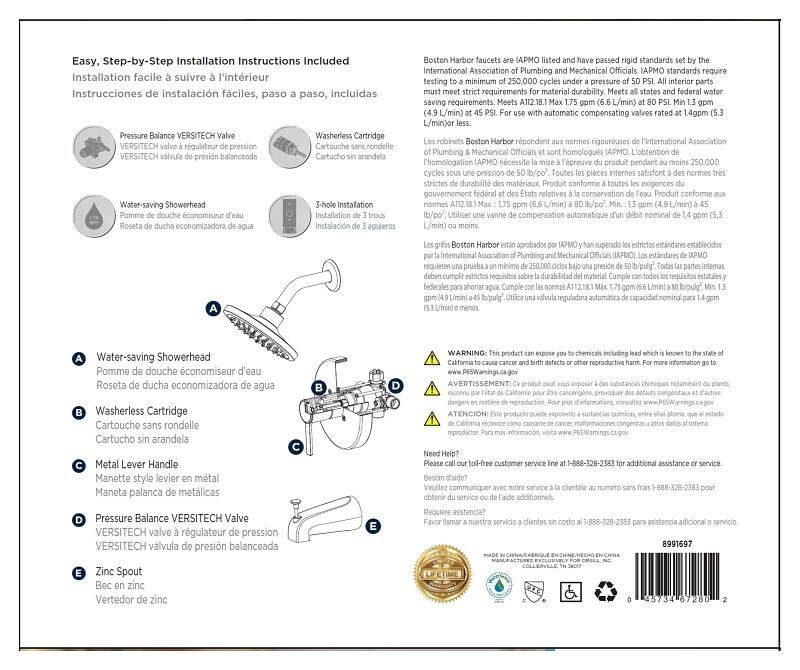 | Faucet Feature | Pressure Balance VERSITECH® Valve Included |