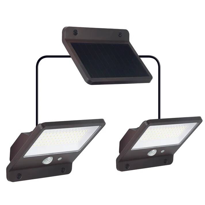 The Pinegreen Lighting solar security light with motion sensor produces 1500 Lumens total, 6500K Daylight, and is a super bright light to illuminate your outdoor area. This light comes with two replaceable 2000mAh lithium-ion rechargeable batteries for longevity. Each light head is independent and comes with a 15-ft wire allowing versatility for your installation. It includes a detachable solar panel and charges using solar energy providing no extra electricity cost and is environmentally friendly. This light is motion activated, sensing people, animals, cars at a 120-degree detection angle and up to a 25-foot range. Installation is easy and simple; all hardware is included for installation.