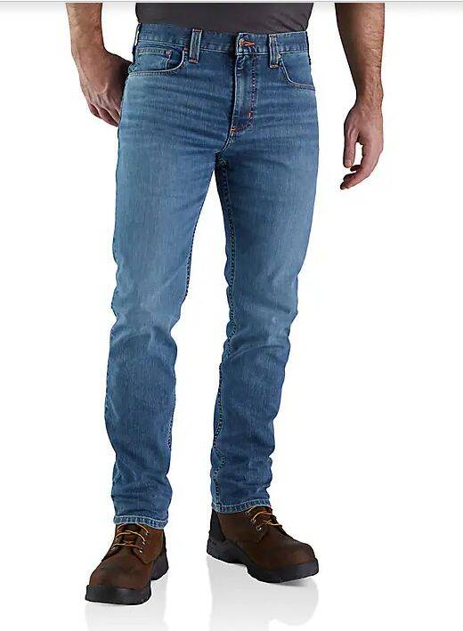 Long hitches or 14-hour days. These men's jeans can stand up to almost anything. They are made of our most durable, abrasion-resistant denim with enough stretch for easy movement. Fitted through the hips and thigh, this fit has a slimmer cut and cuffs that fit over most work boots.