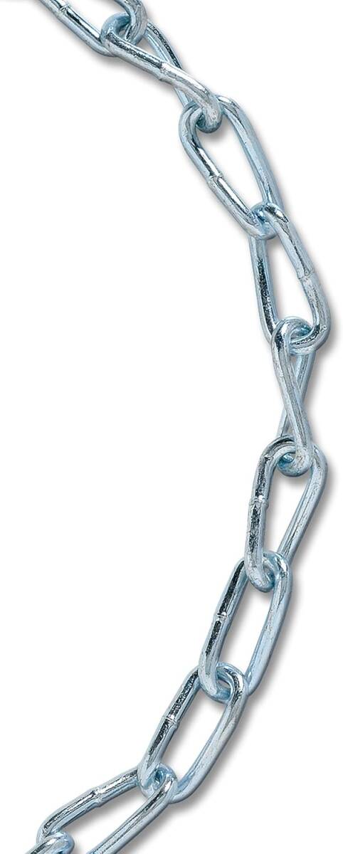Machine twisted chain is made from low carbon steel with an electro galvanized finish, designed for farm implements, tail gates and industrial equipment