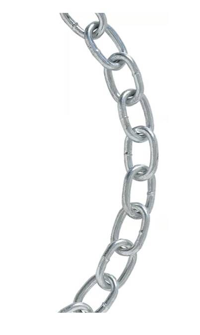 Passing link chain is low carbon steel with an electro galvanized finish. Designed to allow the links to through one another to minimize tangling.