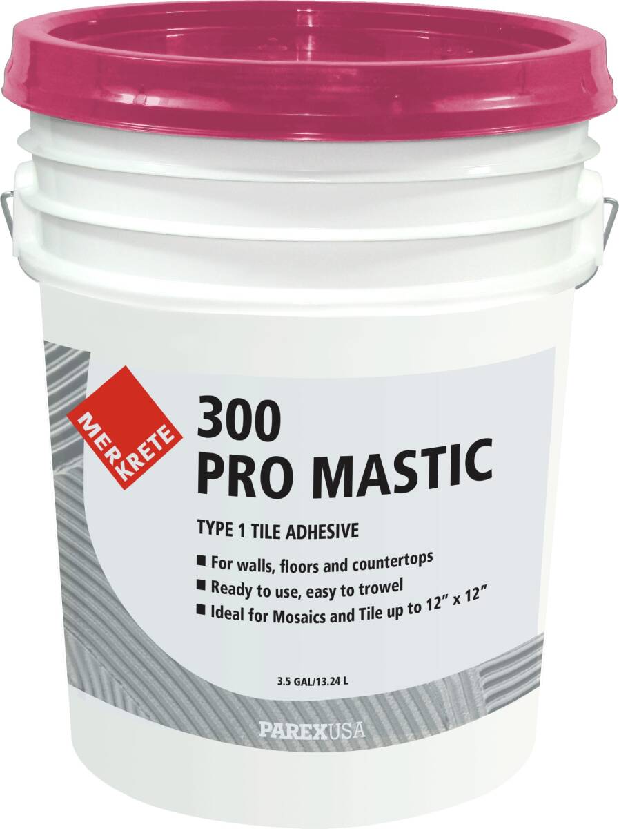 Pro Mastic 300 Ceramic Tile Adhesive is a professional adhesive with great bond strength. Ideal for small format ceramic, mosaic, porcelain and most gauged stone tile on walls and floors, Pro Mastic 300 is used in areas with intermittent water exposure like tub surrounds and shower walls.