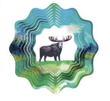 12 inch Moose Wind Spinner. Made from powder coated stainless steel. Durable and Weatherproof.