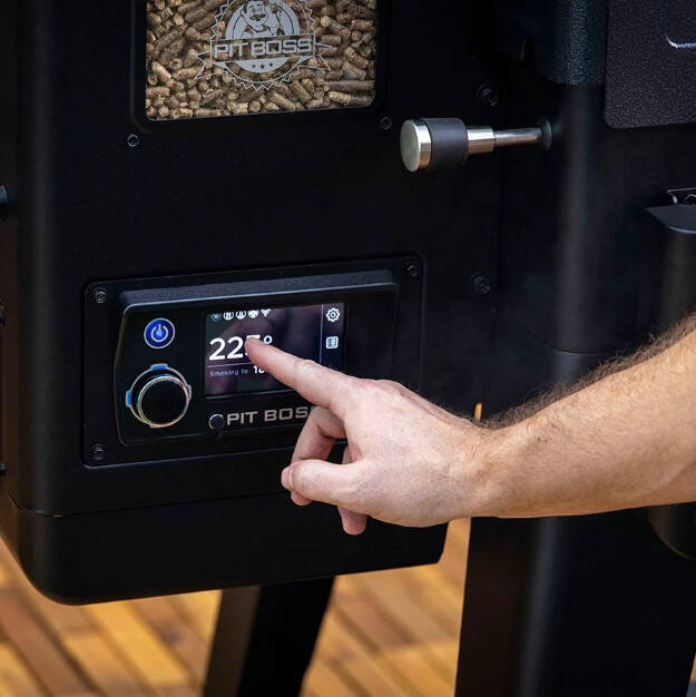 On the inside, fueled by 100% hardwood pellets, the PB1300M is designed to make your backyard the premier destination for world-class BBQ. Controlled by the latest Pit Boss touchscreen digital controller, you have 5° increment settings and the latest Wi-Fi® and Bluetooth® technology so you can take full control of your grill from anywhere using the Pit Boss Grills app.