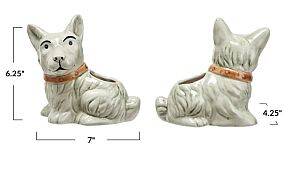 This Vintage Reproduction Scotty Dog Planter is a tribute to timeless design and whimsy. Each planter, with its distinctive crackle glaze and charming color scheme, offers a unique variation that makes it a personal piece for the owner. The playful shape and compact size make it an ideal home for small plants or as a standalone piece that sparks conversation and smiles. It measures 7 inches in length, 4.25 inches in width, and 6.25 inches in height, perfect for adding character to any room. Whether placed in a farmhouse kitchen, a rustic living room, or a boho bedroom, this planter adds a touch of heartwarming nostalgia and crafted beauty to the home. Its durable stoneware construction ensures it will be a cherished item for years to come.