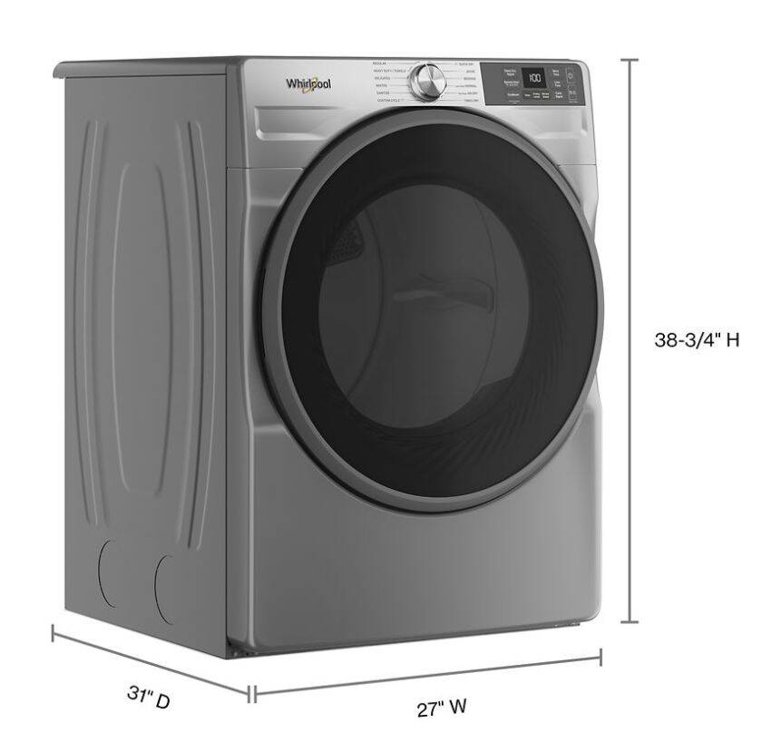 Help prevent wrinkles from setting in to clean, dry clothing with the Wrinkle Shield™ Option on this front load electric dryer. It has smart features like AI sensors that automatically adjust dry time, and remote control with the Whirlpool® App. Plus you can finish laundry day in under 1hr by pairing the 25 minute Quick Wash cycle on the matching washer with the 30 minute timed dry.*