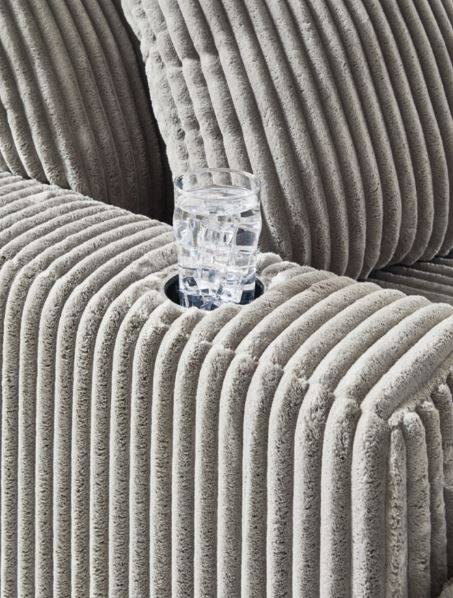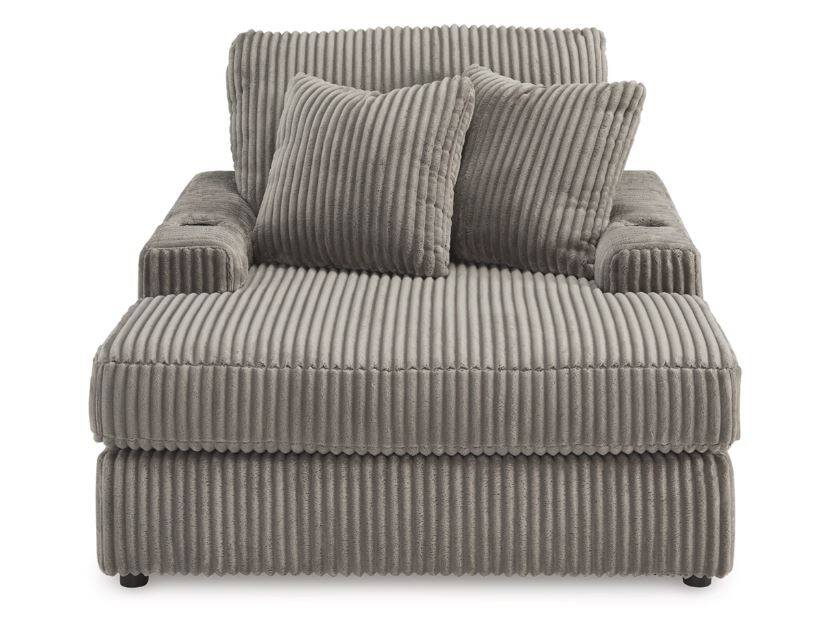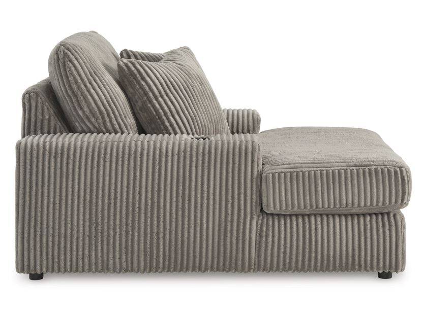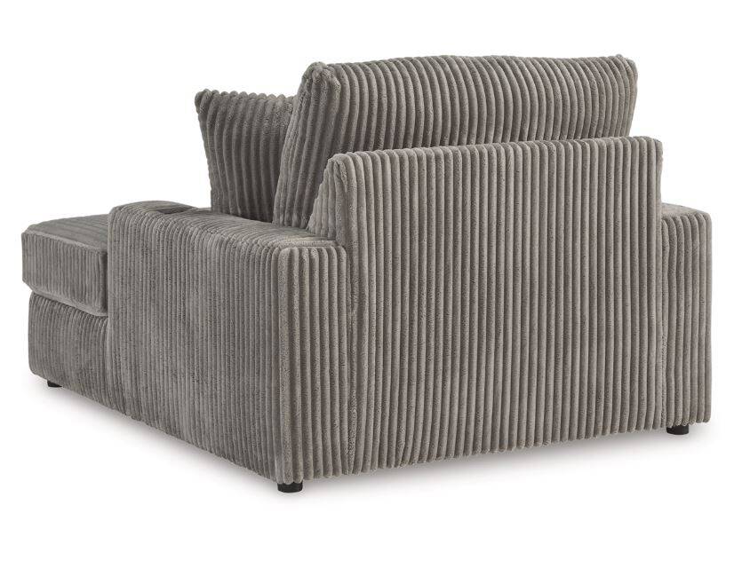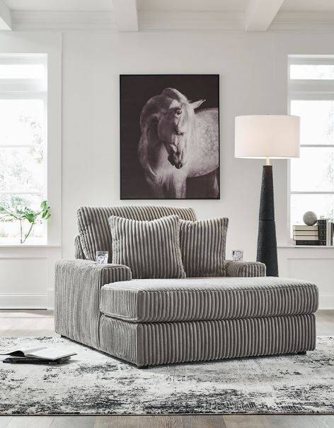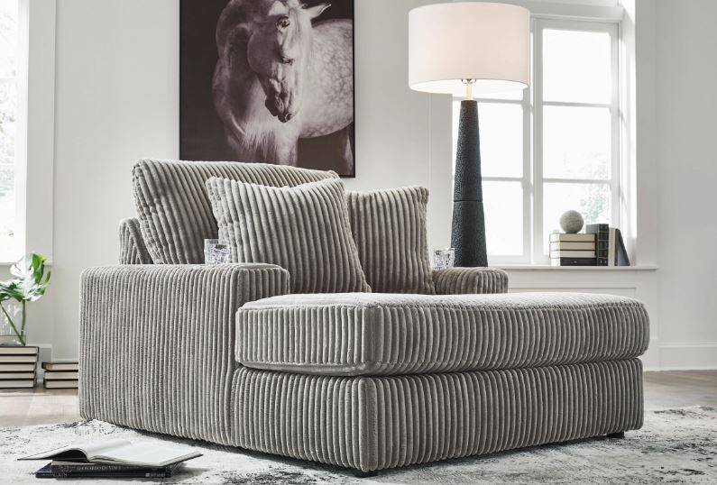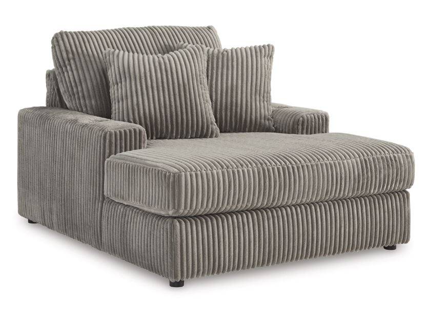 Plush and posh. Showcase your eye for on-trend texture with the statement-making cord upholstery of the Lindyn chaise. Its stunningly soft fabric entices in a warm neutral hue, complementing contemporary color palettes. Sink into the cushions and plan to stay a while—this cozy oversized chaise highlights your high-end approach to comfort and style.