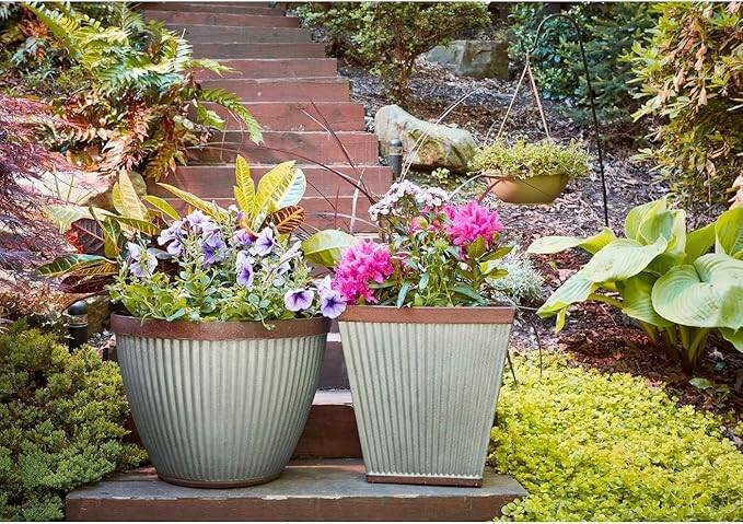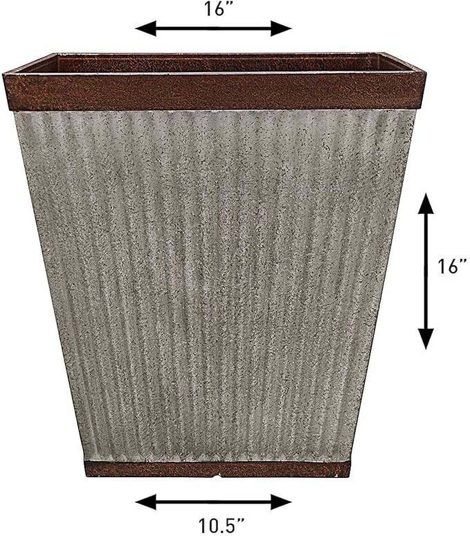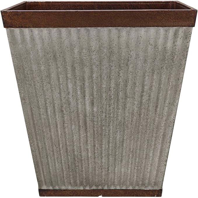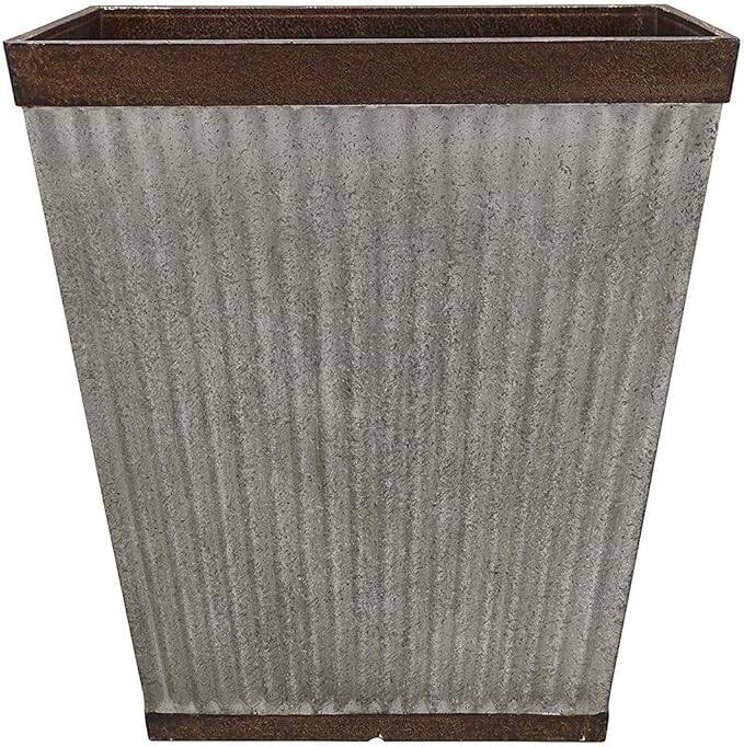 Featuring the weathered appearance of corrugated metal with a faux galvanized finish, the Westlake Resin Square Planter adds a rustic touch to your garden. Unlike traditional metal planters, however, this round pot is crafted from high-density resin, making it lightweight and durable. And, with a special UV-resistant coating, this planter withstands cracking and fading caused by the sun.