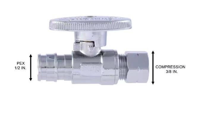 1/2 Inch Pex-A Expansion X 3/8 Inch O.D. Compression Straight Stop Valve