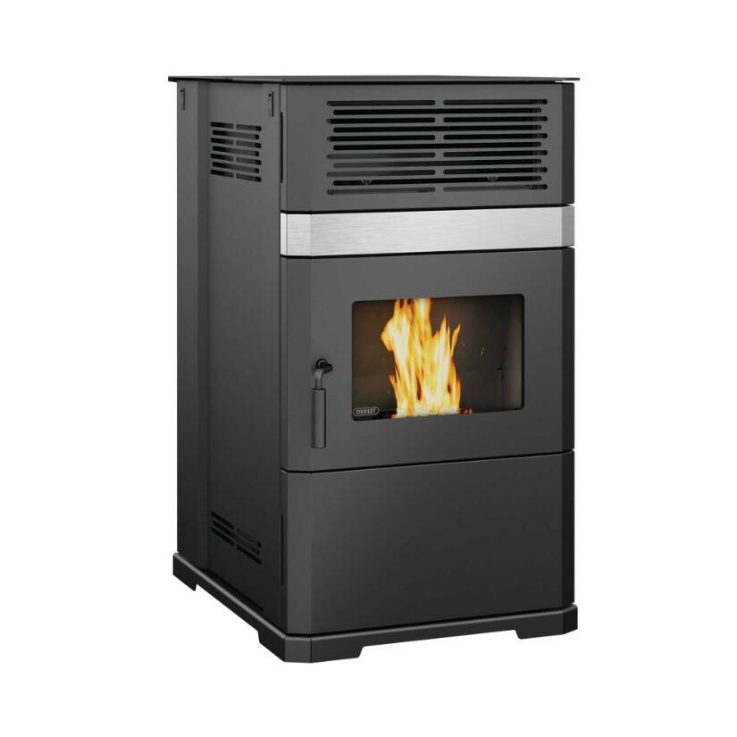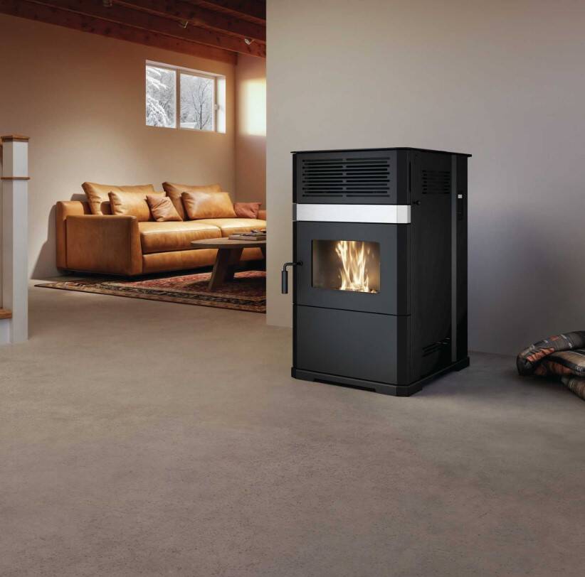 In addition to its many features designed to offer performance and ease of use, the Eco-65R pellet stove stands out thanks to its modern design enhanced with a chrome finish trim.