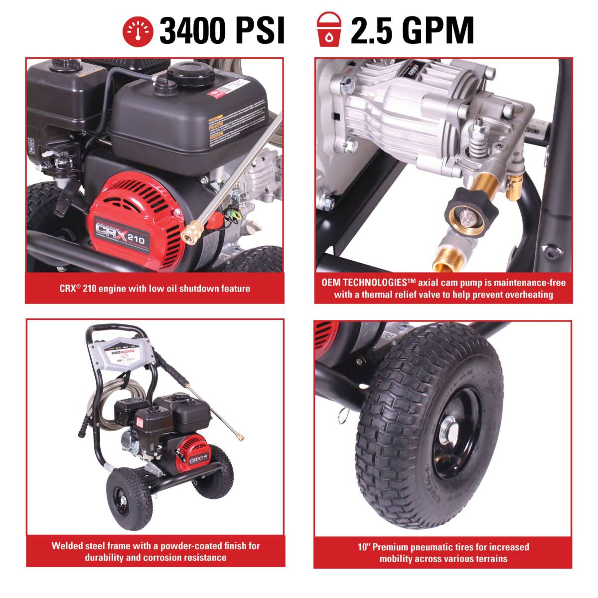 Clean Machine Pressure Washer 3400 PSI 2.5Gpm Crx210 Engine