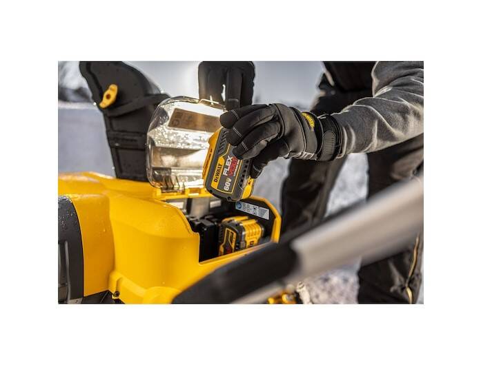 Clear up to 16 parking spaces** with the 60V MAX* Single-Stage Snow Blower. Engineered to throw snow up to 40 ft†, this single-stage machine has a 7 in. steel auger to break down heavy, wet, or packed snow. Powered by (2) FLEXVOLT® DCB612 12.0Ah batteries, this snow blower is equipped with an LED dashboard for instantaneous readouts of battery levels, 2-way electric chute controls for directional command, and single-touch dashboard-mounted paddles. Featuring Max Power Mode to help maximize performance on big jobs and Eco Mode to help prolong battery life, this electric snow blower is designed for tough demands.