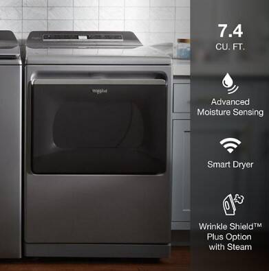 - Help keep wrinkles from setting into clean, dry fabrics. The Wrinkle Shield™ Plus Option with Steam uses tumbling and steam for up to 150 minutes after the cycle ends or until you open the dryer door for improved wrinkle-fighting performance.