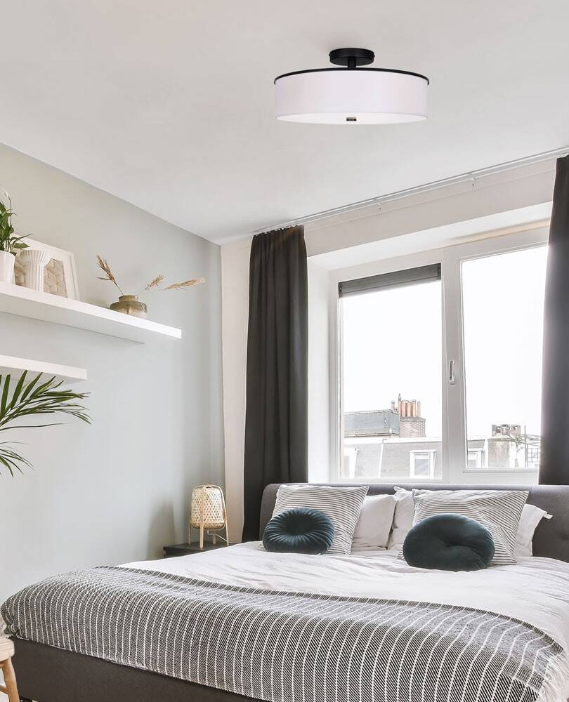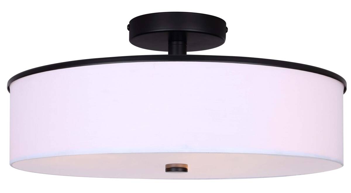 Elevate your favorite space with the clean and classic style of the TRISTAN semi-flush mount. TRISTAN complements a variety of home decor while offering bright yet diffused light. What makes it streamlined and stylish? The versatile combination of a white fabric shade with a matte black finish.