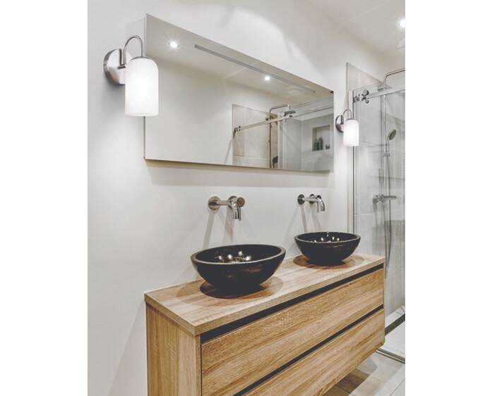 Add a sophisticated and elegant look when you include NOVALEE in your home vanity lighting. NOVALEE's brushed nickel finish delivers a compelling accent to its shapely flat opal glass shade, making this vanity light the ideal piece for both versatility and ambiance.