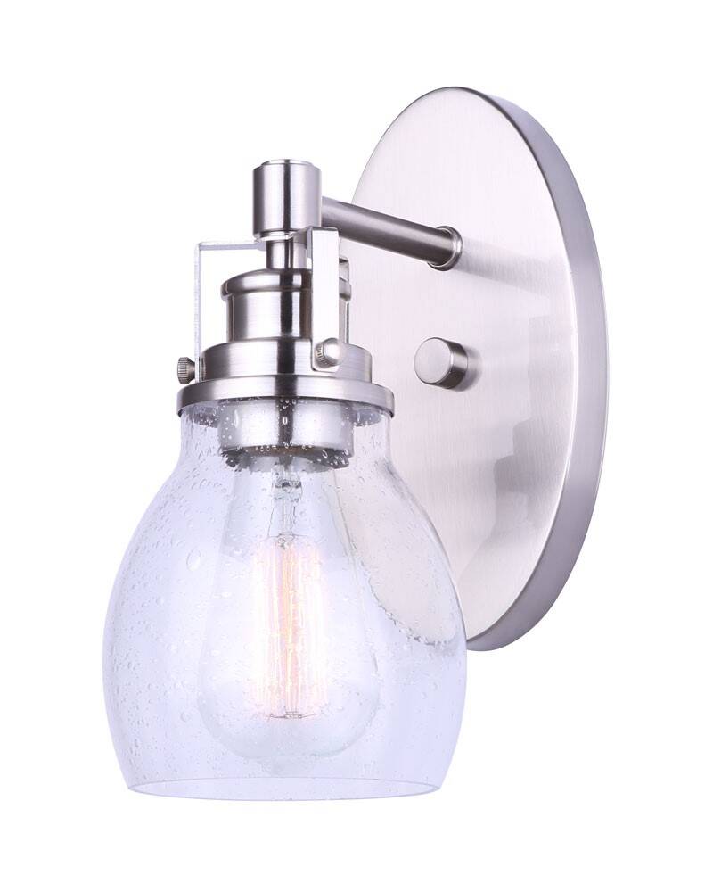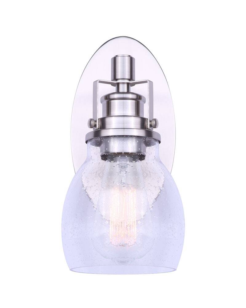 Bring a gentle charm to your bathroom or powder room with the CARSON single vanity light. With the arm and backplate in a stylish brushed nickel finish and a curved shade in a beautiful seeded glass, CARSON's soft look gives off an understated yet stylish touch that is meant to last a lifetime.