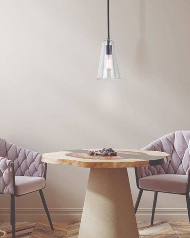 Simple curves add a modern minimalism that contrasts richly with a matte black finish and vintage inspiration. The result is LUISA, a beautiful light with modern feels and a refined sense of classic elegance. LUISA's unique conical clear glass shade is the finishing touch that emphasizes the simplistic beauty of LUISA.