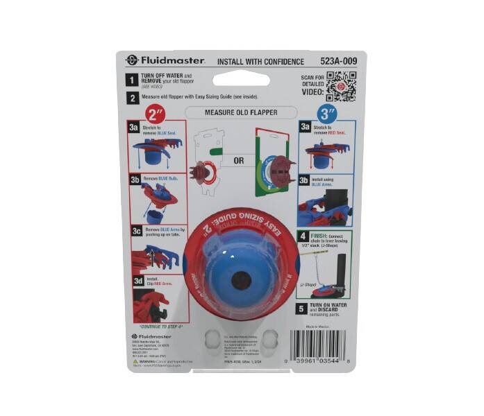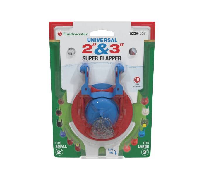 The Fluidmaster® Universal 2” & 3” Super Flapper is the newest and most universal toilet flapper in our flapper line. The Super Flapper is the go to choice, taking the guessing out of what size flapper is needed in the tank. When you don’t know what size flapper you need this fits both 2” & 3” toilets. This can be converted into a 2” flapper or 3” flapper – the ONLY one of its kind on the market. This Super Flapper sets the standard as the easiest installation possible for a flapper. Depending on your flush needs the water adjustment feature with the easy-to-turn adjustment dial allows for the customization of water usage inside the tank. This universal design is built to adjust and work with most toilets and brands using two-piece toilets and flush valves.