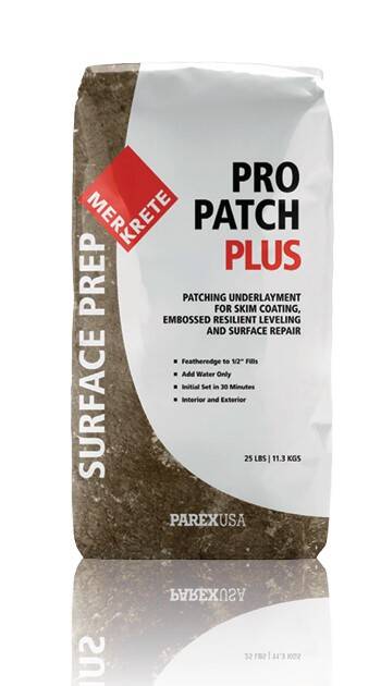 Pro Patch Plus is a quick setting polymer modified Portland cement based skim coating compound for embossed leveling resilient floors and the finishing and smoothing of interior and exterior subfloors. Pro Patch Plus is specifically formulated to smooth out and finish substrates prior to the installation of resilient, carpet, ceramic tile and stone tiles.