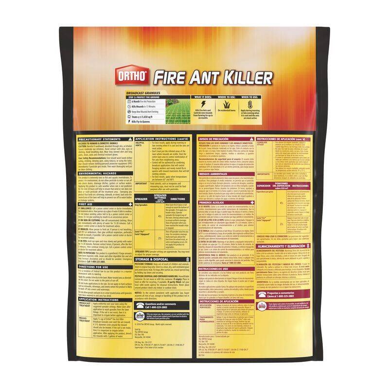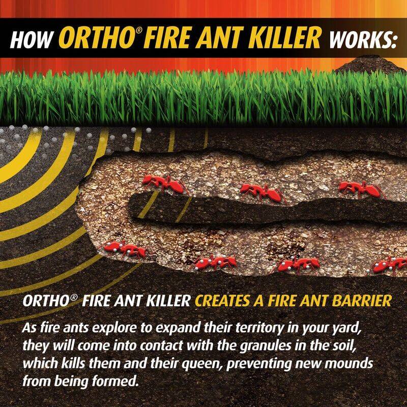 - ULTIMATE FIRE ANT DEFENSE: Ortho Fire Ant Killer Broadcast Granules destroy fire ants, mounds, and the queen and prevent their return