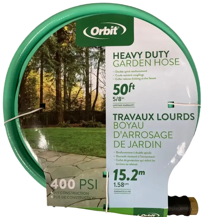 Orbit Irrigation Products, Orbit® Heavy Duty Vinyl Garden Hose – 5/8in x 50ft – Green – With Brass Coupling