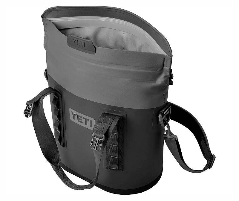 Introducing YETI’s newest tough-as-nails soft cooler, the Hopper® M15. A more compact version of the M30, this adventure-ready soft cooler is ready for trips to the beach, a day on the boat, or a quick hike. Made with YETI’s durable, powerful wide-mouth opening and MagShield Access, it stays open when you’re loading it and closes tight with a gentle push. It holds up to 32 cans of your favorite beverage (15.5 lbs. of ice). The Kangaroo Pocket lets you easily stash away keys, a wallet, or phone. A strip of durable ultra-strong magnets locks in cold while Quick-Release Buckles provide extra security through choppy water or when riding through rough terrain in the bed of a truck.