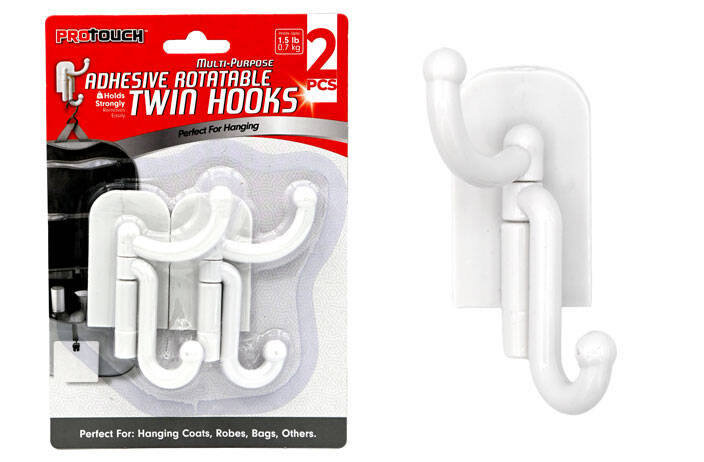 ProTouch White Rotating Adhesive Hooks, 2-Pack