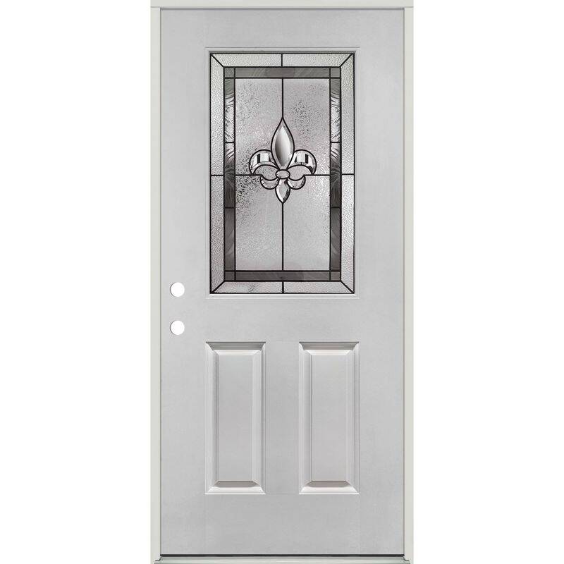 36-Inch X 80-Inch Fiberglass Textured Fleur-de-lis Patina Half Lite Left Hand Prehung Exterior Door