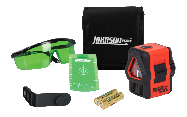 Johnson's self-leveling cross & line laser combines the features of a cross-line laser with an additional 90° plumb line, useful for checking square reference of beams, posts or any other object. It features GreenBrite® technology, making the beams 400% more visible than red beams for working in sunny or brightly lit conditions. Thanks to the laser's visual out-of-level indicator, you'll never need to worry about accuracy - if the laser can’t self-level, it will alert you by flashing the beam. With the included magnetic target, magnetic bracket, and tinted glasses, you'll have everything you need to get your job up and running!