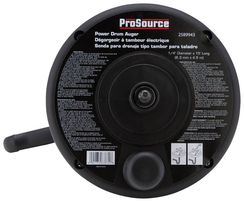 1/4 in. Power Drum Auger - 15 ft. L, 1-Pack