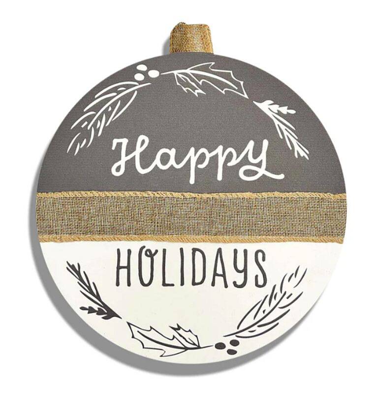 14-Inch Diameter "Happy Holidays" Round Door Hanger Sign With Ribbon Trim