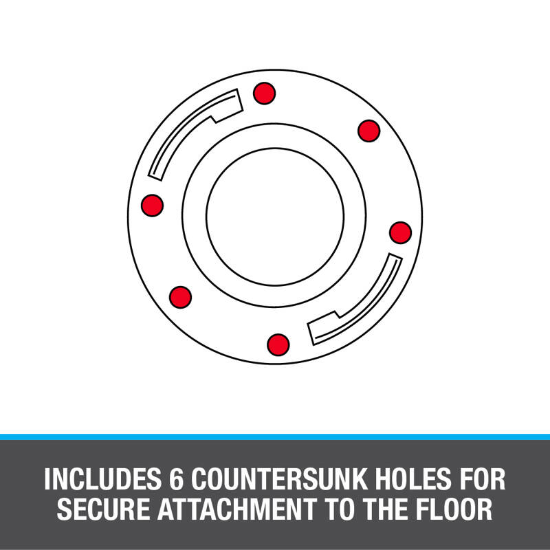• 6 screw holes designed to meet any toilet installation type and provide secure attachment to floor