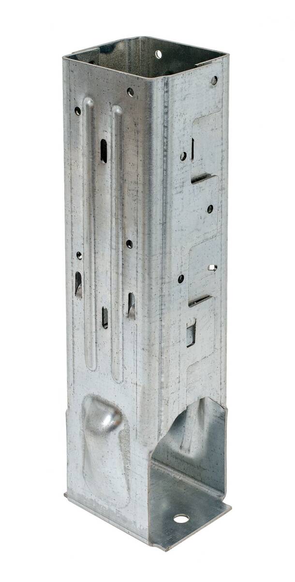 The MPBZ® is specifically designed to provide moment resistance for columns or posts. An innovative overlapping sleeve design encapsulates the post, helping to resist rotation around its base. The MPBZ is ideal for outdoor structures, such as carports, fences and decks. Built-in standoff tabs provide the required 1 inch standoff to resist decay of the post while eliminating multiple parts and assembly. Additionally, the MPBZ is available in ZMAX® as the standard finish to meet exposure conditions in many environments.