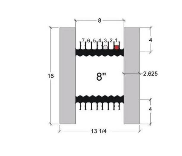 • Rebar spacing is consistently 16" o/c and lower truss is 8" o/c from top or bottom of upper truss