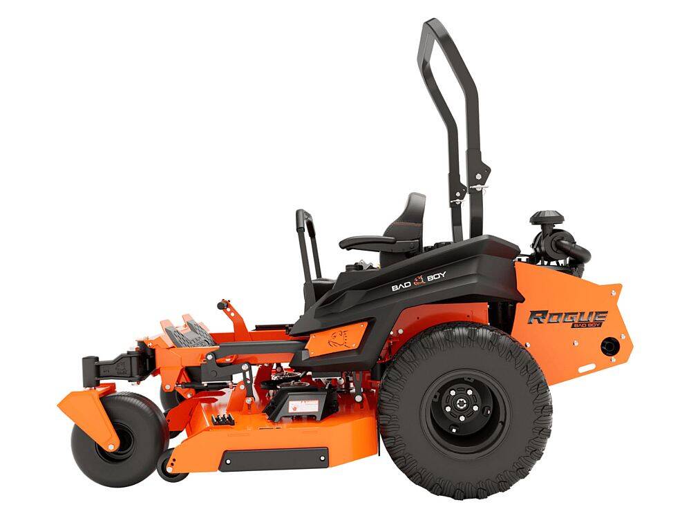 - REDEFINING COMMERCIAL GRADE: Now you can mow like a pro with the Bad Boy Rogue Zero-Turn Mower. It's the perfect balance of power and performance. Standard features like our adjustable suspension seat, built-in striping kit, run-flat tires, speed tracking, and adjustable handles give you an edge. Driven by your choice of four engines, plus commercial-grade dual hydraulic pumps and drive motors, the Rogue gives you a professional-grade cut every time.