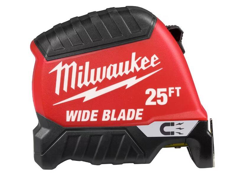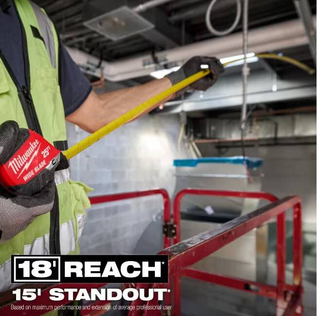The 25ft Wide Blade Tape Measure delivers the longest reach and straightest standout in the industry. 18’ of Reach and 15’ of Standout allow you to take long measurements on your own and reach further on the jobsite. The Wide Blade Tape Measure features a finger stop for quick, controlled blade retraction and double-sided anti-tear coating that reinforces the first 6” of the blade. This tape measure is equipped with a large hook for improved top and bottom hook grab onto common jobsite materials and double-sided printing for measuring in different orientations. Built to withstand the jobsite, this tape has a fully reinforced impact resistant body and a wire form belt clip to reduce pocket tearing.