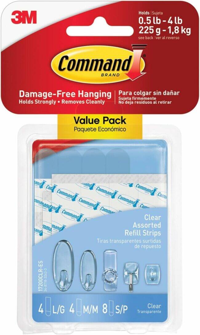 Command™ Replacement Mounting Strips make it easy to move and rehang your Command™ Products for cleaning, redecoration or re-organization. Like all Command™ Products, they hold strongly on a variety of surfaces, including tile, wood, metal and painted surfaces. Yet they also remove cleanly - no holes, marks, sticky residue or stains. Command™ Refill Strips come in both small, medium and large sizes. Also a great for replacement for double sided sticky tape. Holds strongly yet removes cleanly.