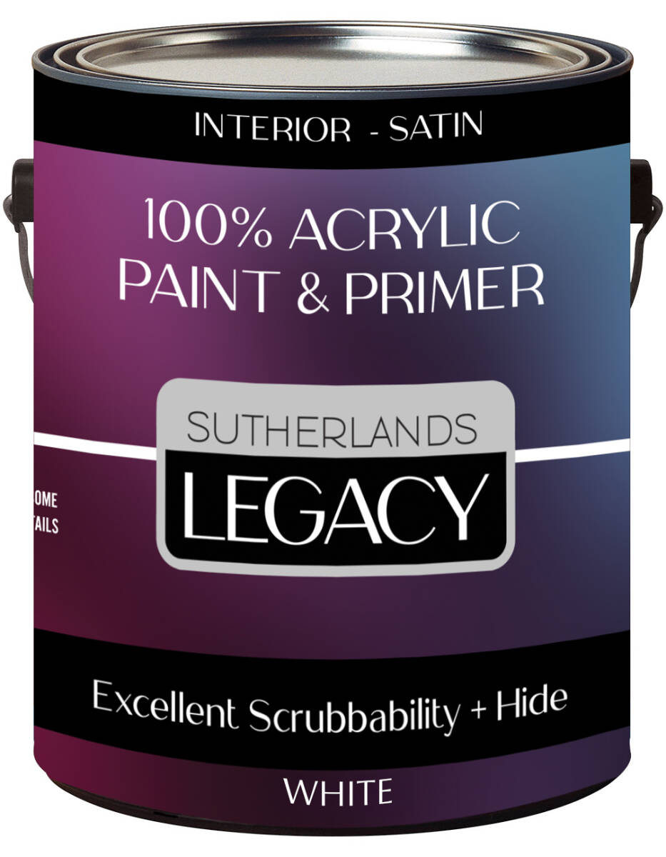 Sutherlands Legacy Paint is 100% acrylic paint designed for exceptional durability and coverage. Its advanced formula offers excellent scrubbability, making it ideal for high-traffic areas that require frequent cleaning. Available in a variety of colors and finishes to suit your style.