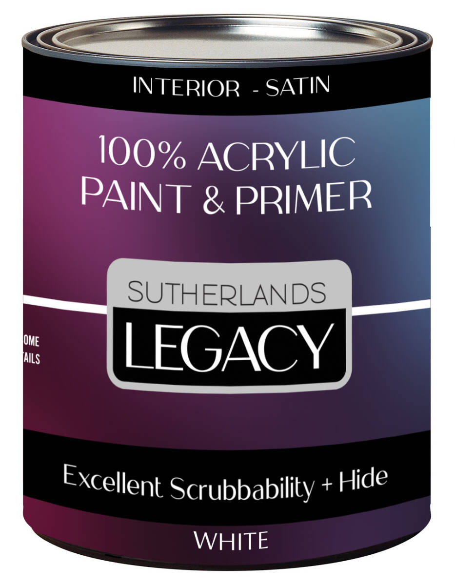 Sutherlands Legacy Paint is 100% acrylic paint designed for exceptional durability and coverage. Its advanced formula offers excellent scrubbability, making it ideal for high-traffic areas that require frequent cleaning. Available in a variety of colors and finishes to suit your style.