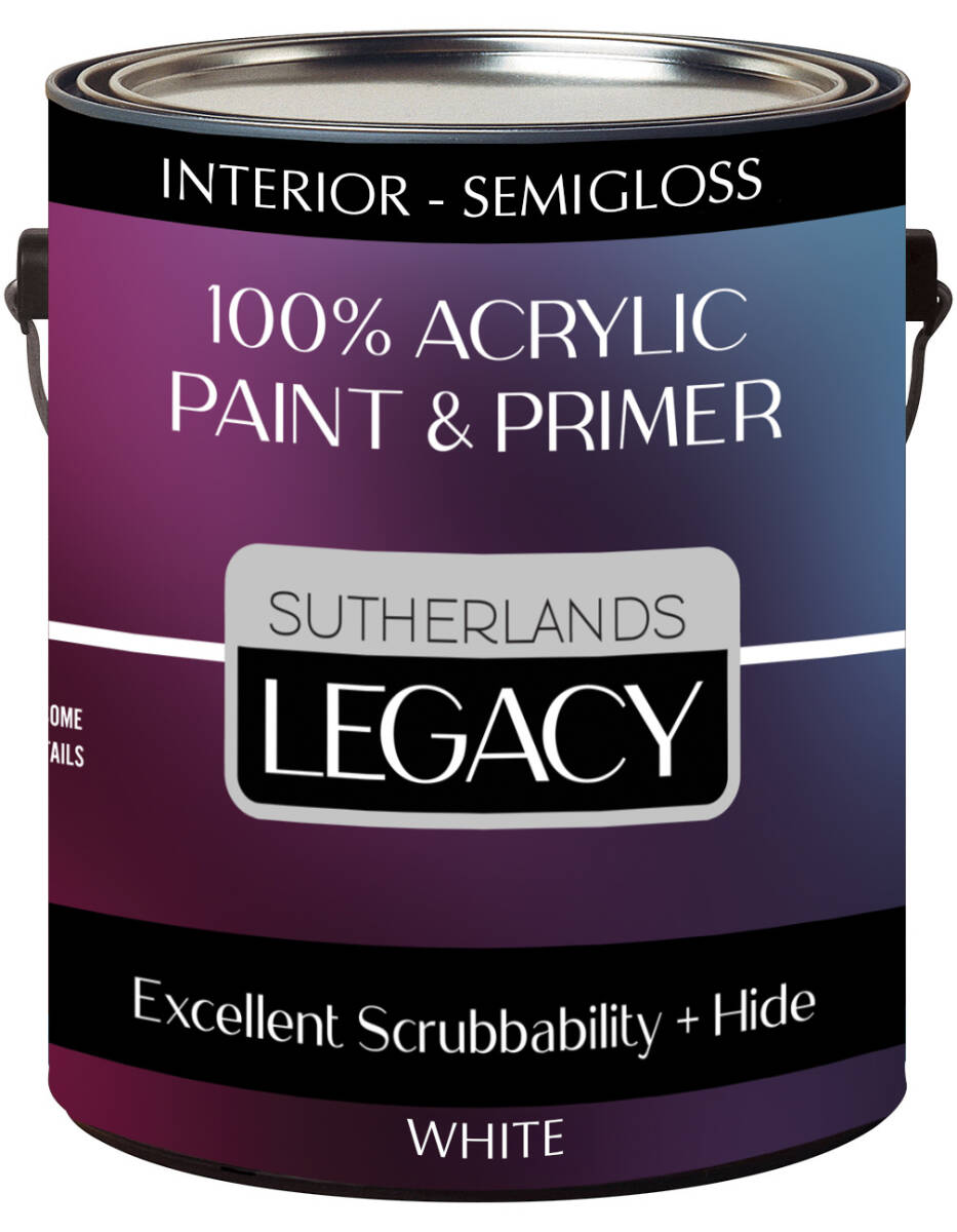 Sutherlands Legacy Paint is 100% acrylic paint designed for exceptional durability and coverage. Its advanced formula offers excellent scrubbability, making it ideal for high-traffic areas that require frequent cleaning. Available in a variety of colors and finishes to suit your style.