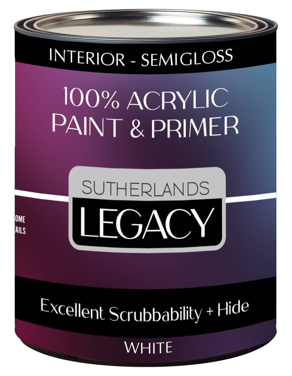 Sutherlands Legacy Paint is 100% acrylic paint designed for exceptional durability and coverage. Its advanced formula offers excellent scrubbability, making it ideal for high-traffic areas that require frequent cleaning. Available in a variety of colors and finishes to suit your style.