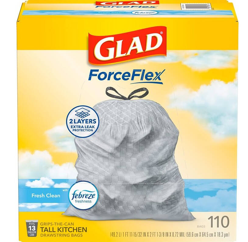 Glad® ForceFlex trash bags feature leak protection with RipGuard® and LeakGuard® protection.