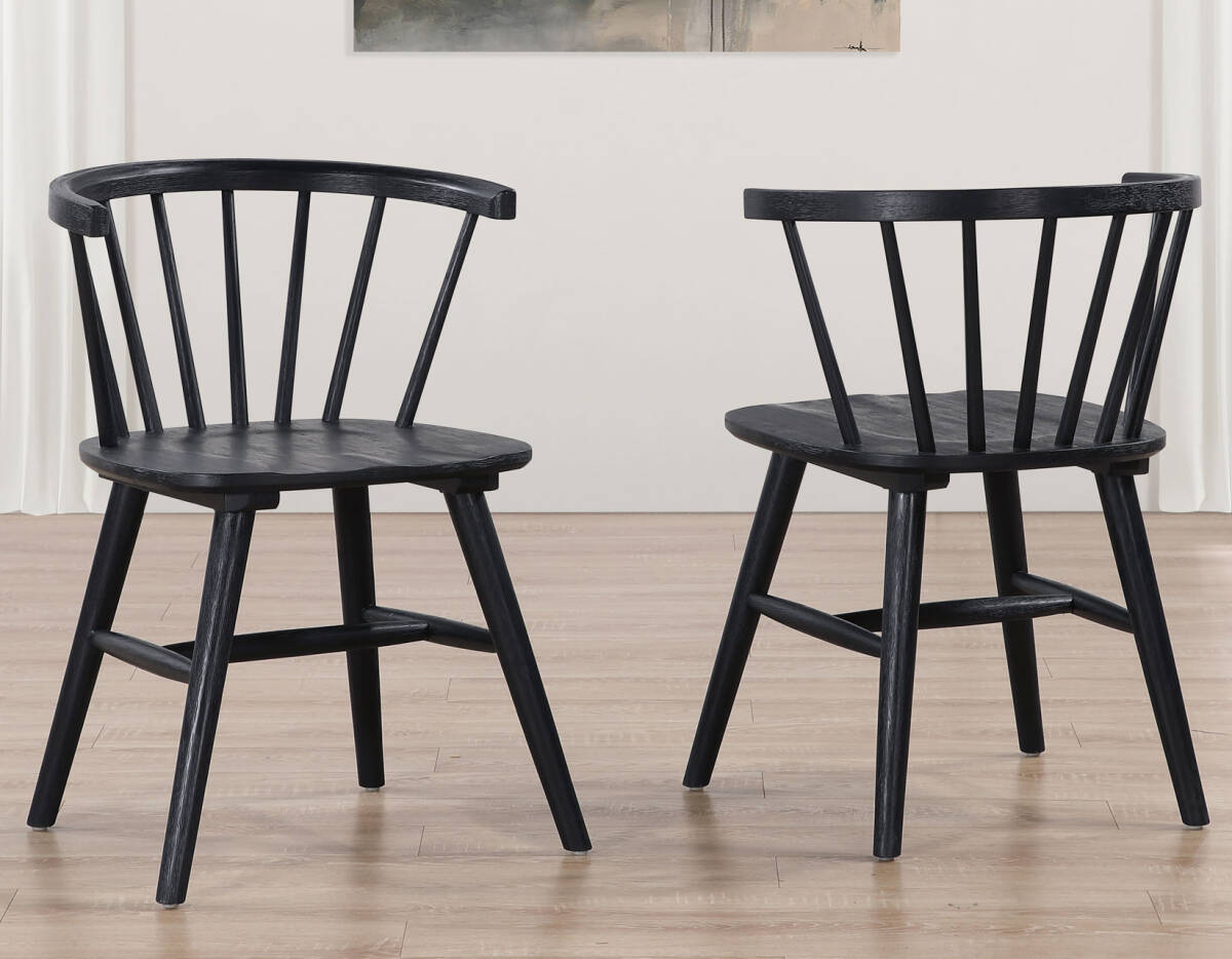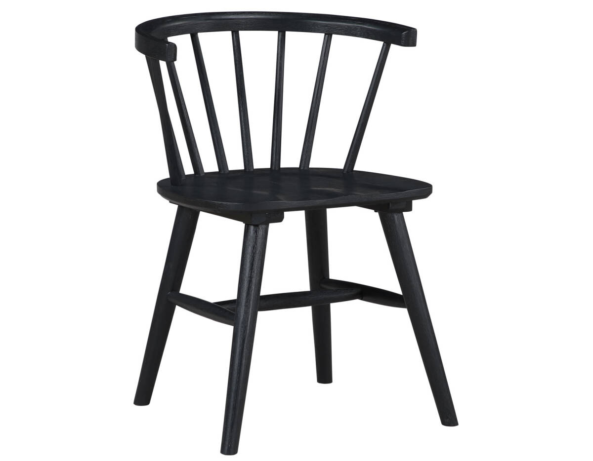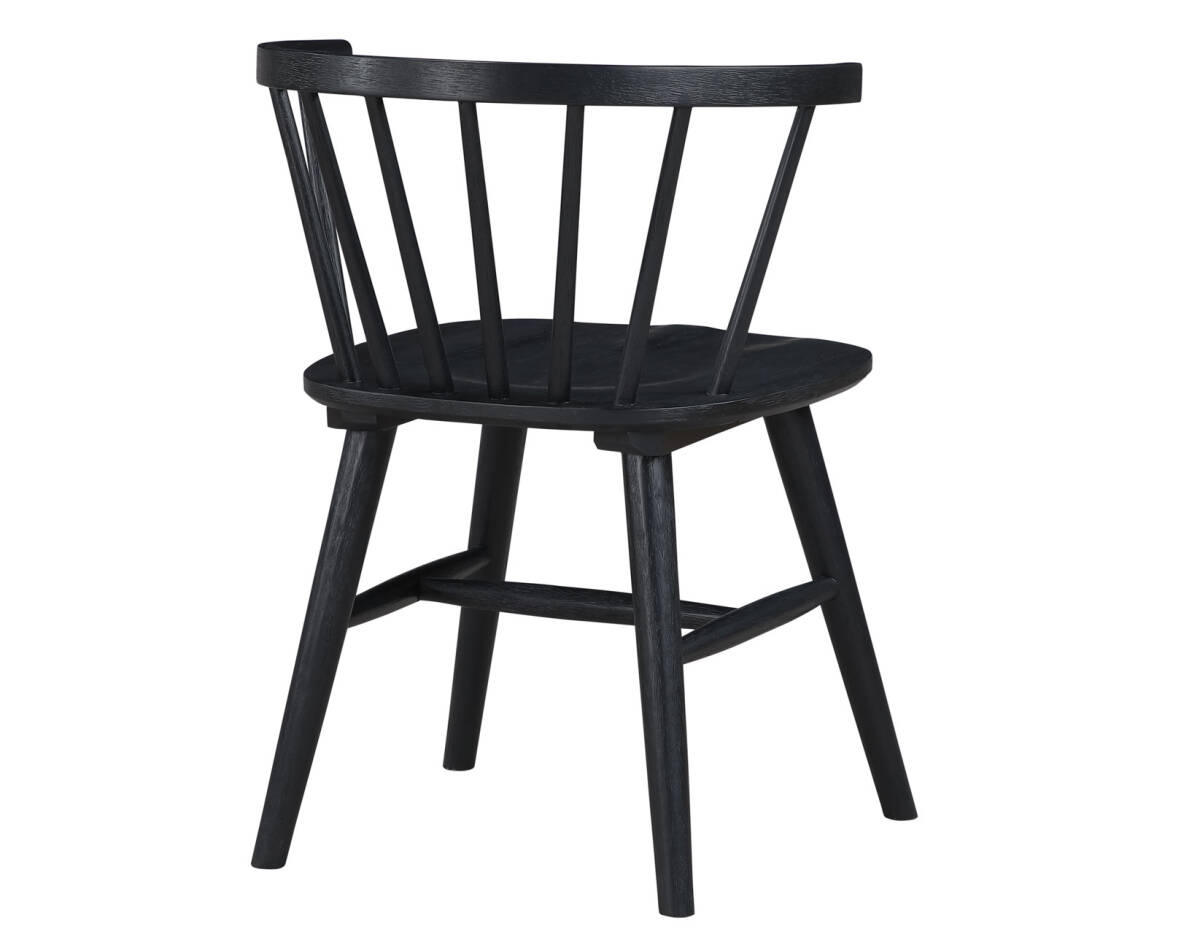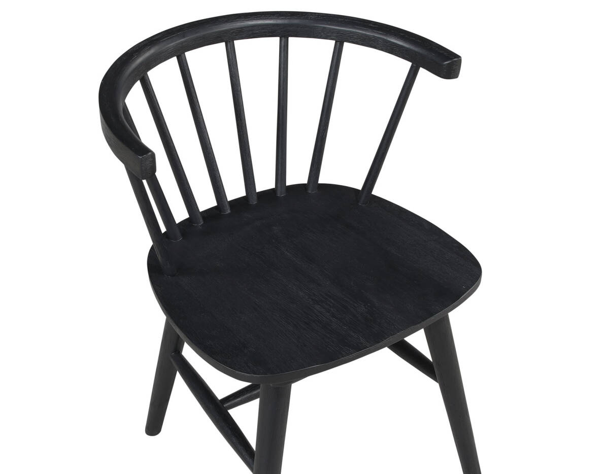 Willow brings a modern twist to the timeless Windsor chair. Meticulously crafted from sturdy solid woods in a clean black finish, its sleek lines seamlessly blend into both modern and farmhouse settings. Featuring a gently contoured low back for optimal support and a scooped seat for added comfort, Willow stays faithful to the traditional Windsor style while enhancing it with modern convenience. Sink into relaxation and rest your arms with ease. Whether paired with a farmhouse table for a charming rustic ambiance or matched with a sleek modern table for a touch of contemporary flair, Willow effortlessly elevates any dining space.