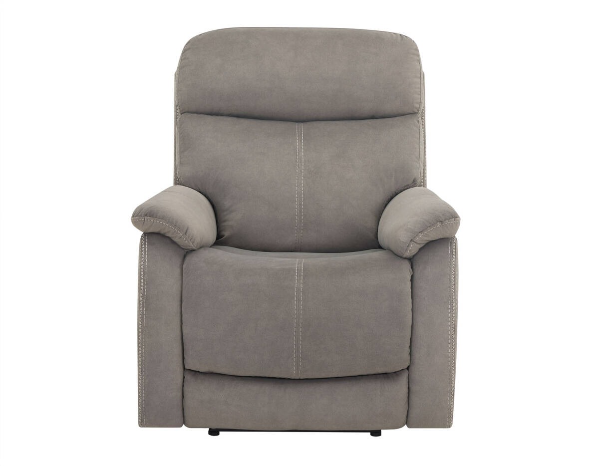 The Surrey power recliner is sure to become your favorite chair with its transitional style and over-padded, comfortable design. With its power lay-flat mechanism, enjoy infinite reclining positions. The solid steel construction and steel seat box create a robust foundation, ensuring stability and a 300 lb. weight capacity. The seamless chaise pad design and a 3-inch footrest extension cater to all heights, eliminating pressure points. Convenience meets modern needs with an integrated USB port. Luxuriate in the high-resiliency foam seating and easy-to-maintain, fade-resistant taupe vegan leather cover. Easy to assemble, it’s the epitome of enduring comfort and stylish, practical luxury.