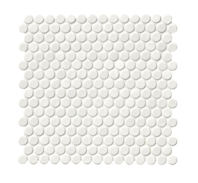 12-Inch X 12-Inch White Glossy Round Penny Mesh-Mounted Mosaic Tile