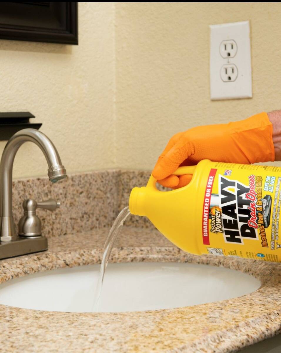 Heavy Duty Drain Opener is the economical treatment for bathroom and kitchen drain clogs. We recommend that Heavy Duty Drain Opener be allowed to stay in the drain overnight. The longer it remains in the drain the more drain clogging matter it will dissolve.