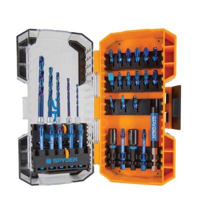 - The 30-piece Spyder Mach-Blue™ Impact Drill and Driver Bit Kit features extreme metal-drilling bits and Tough Tip Technology driver bits