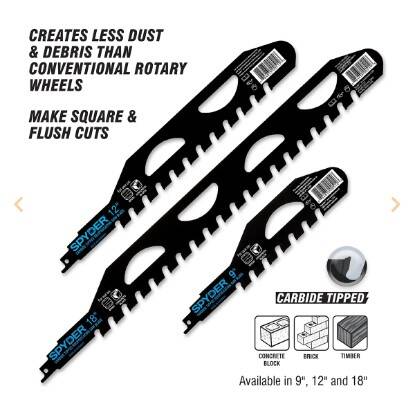 - Quickly cuts through concrete block, brick, masonry and timber
