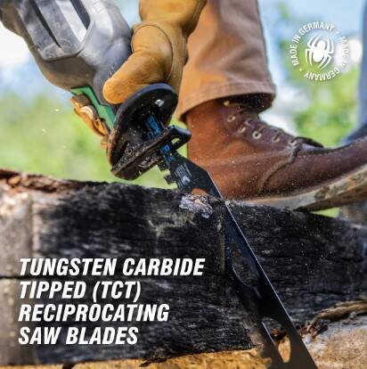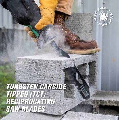 Tungsten carbide teeth combined with the power of a reciprocating saw quickly cut through brick and mortar, stone, concrete (cinder) block, timber and much more. Recommended for use on concrete products, brick or timber materials — make sure to check the Mohs hardness of the material being cut.