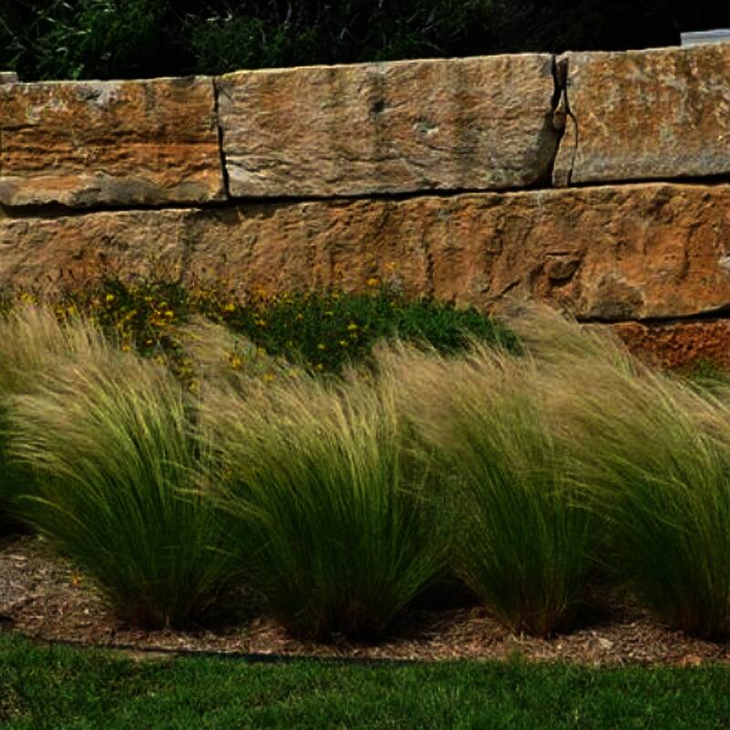 Southwest native, among the finest textured of all ornamental grasses. Silvery flowers appear among dense green foliage in late spring. Combine with rocks or bold textured companion plantings. Grows to 1 to 2 ft tall and wide.